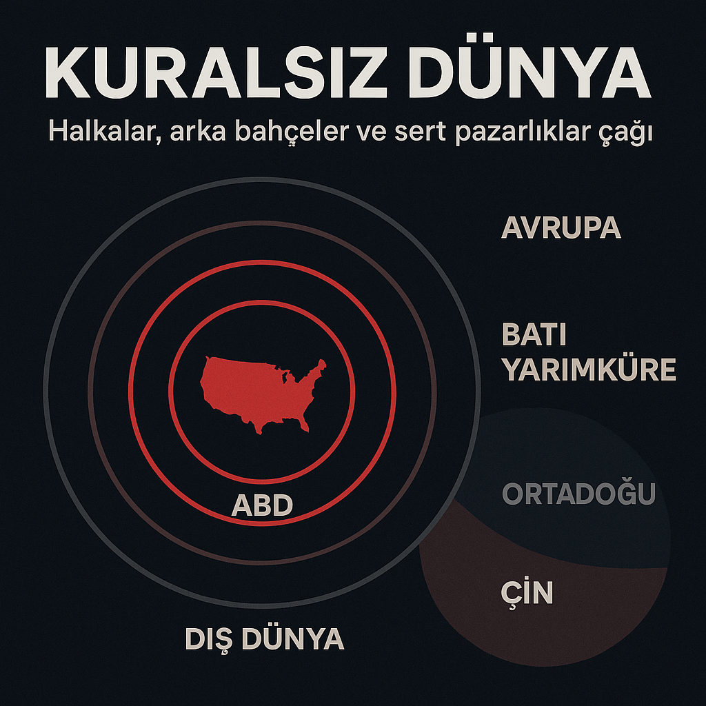 Ulusal güvenlik stratejisi dünyayı sert nüfuz halkalarına ayırır: Duvarlarla ve güçle korunan iç halka; Batı Yarımküre’de hiçbir sızmaya izin verilmeyen bölgesel halka; ve geri kalan, pazarlıklarla yönetilen dış halka. Demokrasi, insan hakları ve uluslararası hukuk seçici söylem araçlarına dönüşür; işe yaradığında kullanılır, çıkarlarla çeliştiğinde bir kenara atılır.